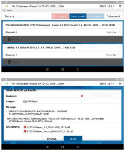 Nowe funkcje w KTS 250 Po aktualizacji 1.6 ESI [tronic] w KTS 250 dostępna będzie nowa funkcja - wysyłania raportów za pomocą e-maili. Raporty diagnostyczne i protokoły w testerze KTS 250 będzie można przesyłać bezpośrednio pocztą elektroniczną, np. na komputery stacjonarne w serwisie, aby je w razie potrzeby wydrukować, czy przesłać od razu na skrzynkę e-mail klienta. Jednorazowo, będzie można wysyłać kilka raportów, dotyczących kilku pojazdów. Dodatkowo, po aktualizacji 1.7 w KTS 250 dostępna będzie jeszcze jedna, nowa funkcja: Informacje o stanie przebiegu samochodu. Najczęściej informacje dot. stanu przebiegu pojazdu przekazywane są dla firm i towarzystw ubezpieczeniowych, rzeczoznawców czy firm leasingowych.